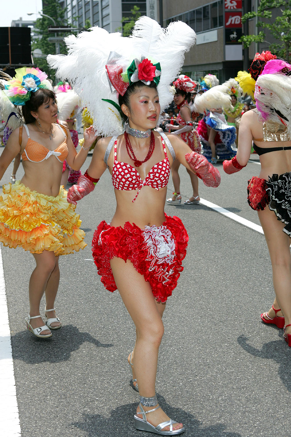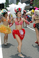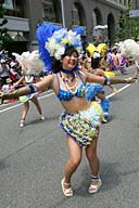 ブラジルのサンバと違う独特のコスチュームは神戸サンバチームのオリジナル、サンバの情熱的な華麗さを残しつつ、花をモチーフとする可愛らしさを加えた絶妙なコスチュームをご紹介します。